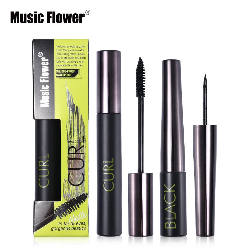 Музыка цветов не размазывается Экстра Lash-керлинг Тушь для ресниц + Водонепроницаемый Liquid Eye Liner Макияж комплект идеальный создать 24 h долгое ...
