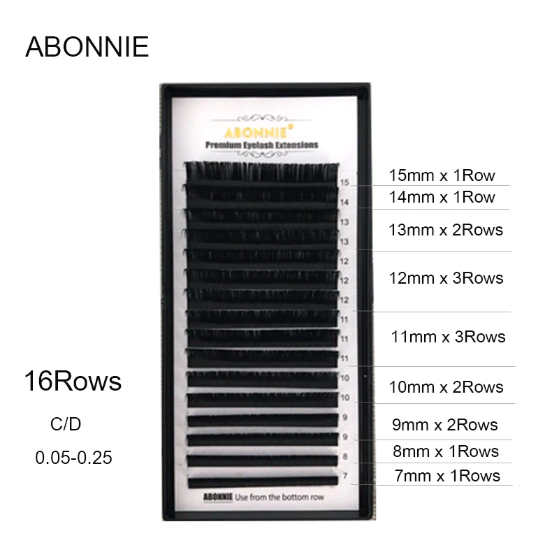 ABONNIE, 16 строк, 7-17 мм искусственной норки отдельных наращивания ресниц, реснички ресницы расширение для профессионалов, мягкая норка ресниц