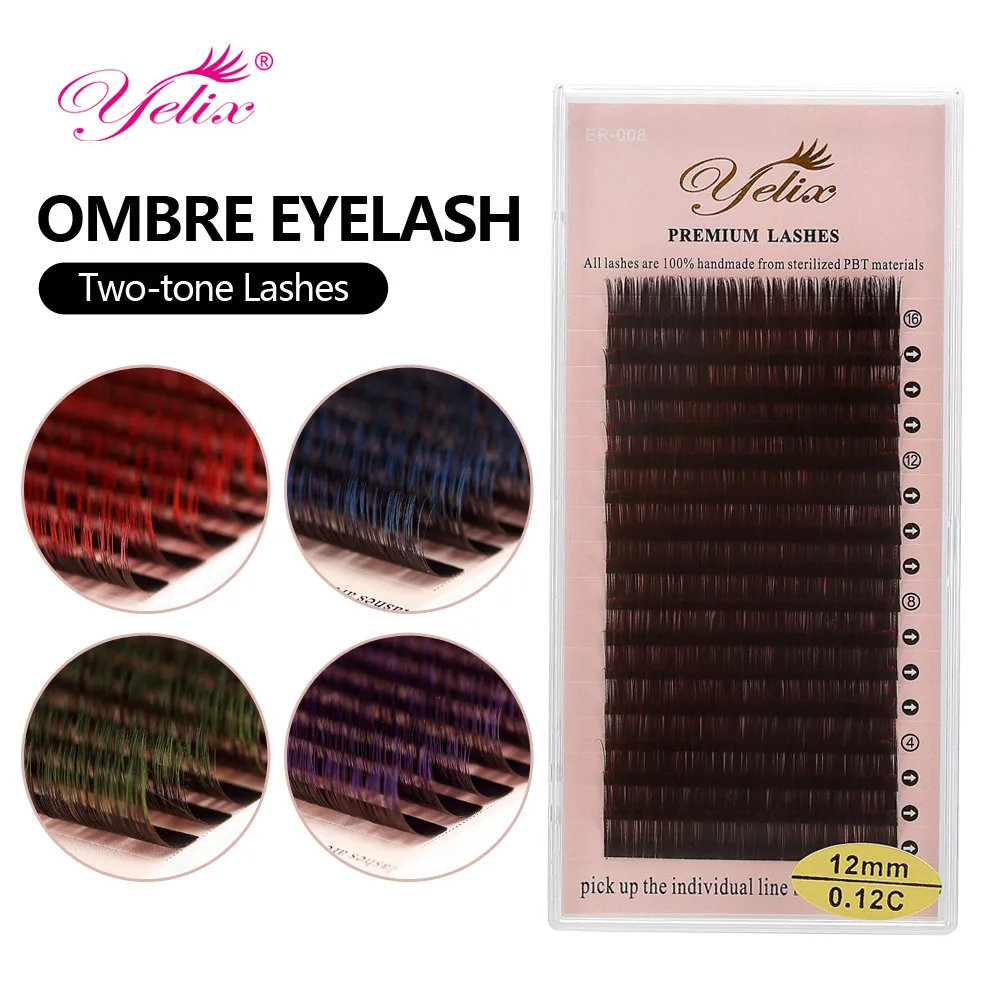 Yelix норка объемные ресницы Омбре шелк поддельные ресницы наращивание супер мягкие двухцветные Индивидуальные ресницы градиентный цвет 0,12 ...