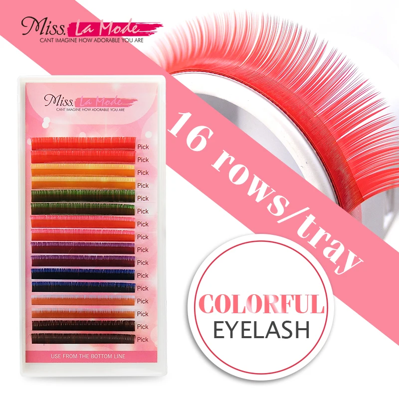 Misslamode 8 цветов 16 рядов Радуга наращивания ресниц Цвет ложные накладные ресницы, накладные ресницы 0,07/0,10 1 шт./лот