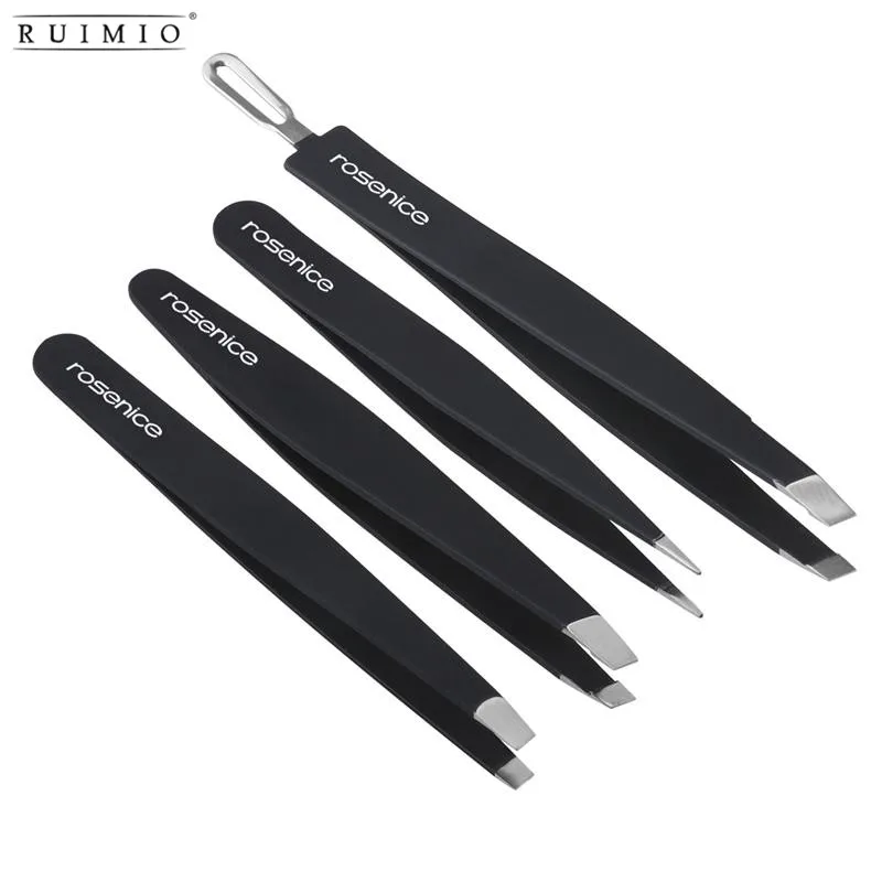 RUIMIO шт. 4 шт. Professional 401 нержавеющая сталь Наклонная Совет Пинцет Best точность щипцы для бровей комплект с резиновой окрашенные черный
