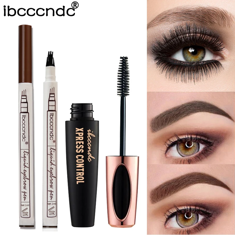 Модный макияж для глаз, 4D шелковое волокно, тушь для ресниц, толстая, Rimel, 3 цвета, микроблейдинг, карандаш для татуировки бровей, эскиз, жидкая ручка для бровей, набор