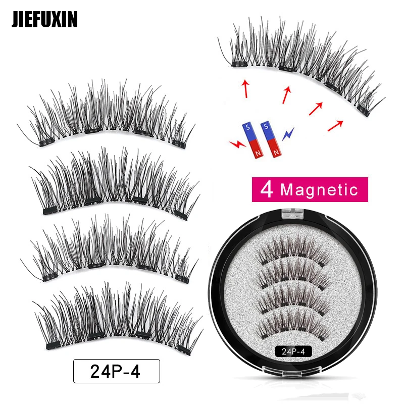 JIEFUXIN накладные ресницы на магнитах с 4 магнитов ручной работы 3D/6D магнитные ресницы натуральные накладные ресницы магнит ресниц с подарочно...