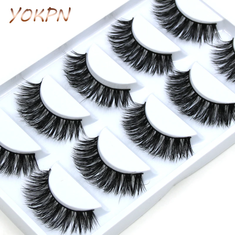 YOKPN 5 пар ручной работы хлопок стебель вода норковые накладные ресницы Набор нарощенных ресниц плотные натуральные ресницы для глаз сцениче...