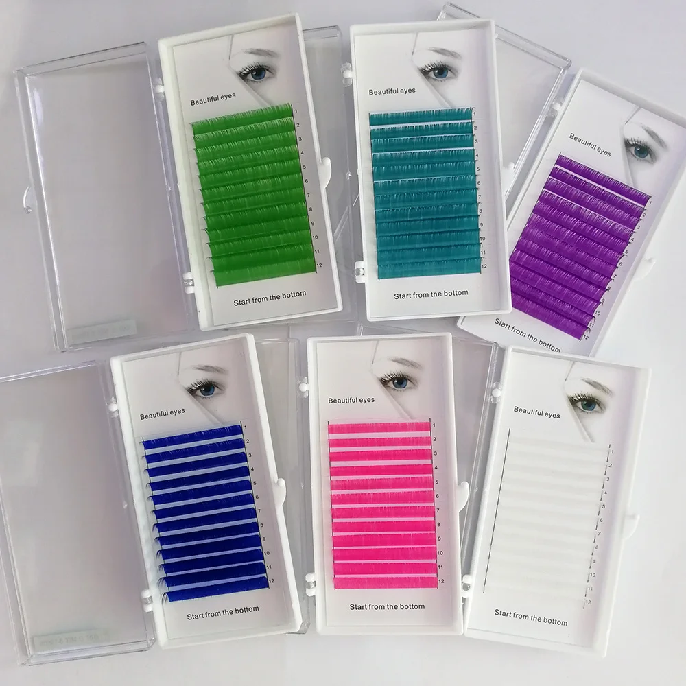 Цветные накладные ресницы для наращивания, 8-13 разных цветов, зеленые/светлые/розовые/синие/фиолетовые, Индивидуальные Накладные ресницы для макияжа, для наращивания ресниц