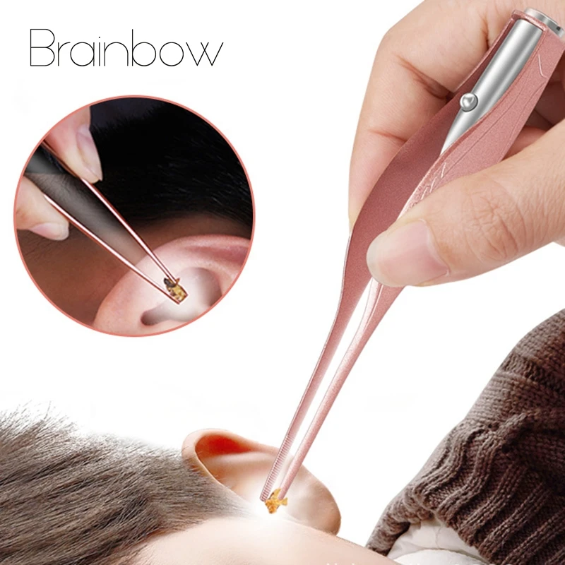 Brainbow светодиодный фонарик, пинцет для чистки ушей, инструмент для чистки ушей, носа, пупка из нержавеющей стали, пинцет для удаления ушной се...