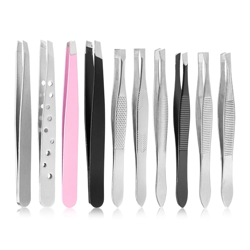 10 шт./партия пинцет для бровей из нержавеющей стали щипцы для волос зажим для бровей Триммер для наращивания ресниц зажим для макияжа инстру...