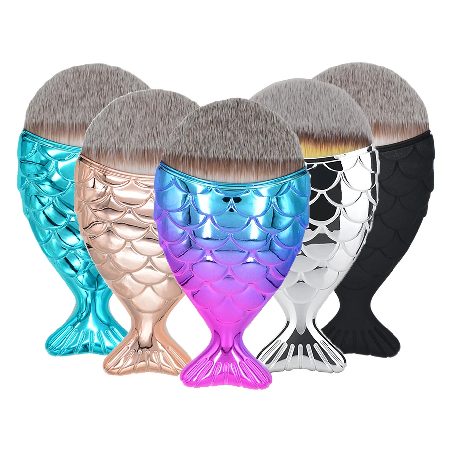 Профессиональные кисти для макияжа Русалка Рыба Форма кисть для пудры Фонд BB крем Кисть Make up Tool Pincel maquiagem розовое золото