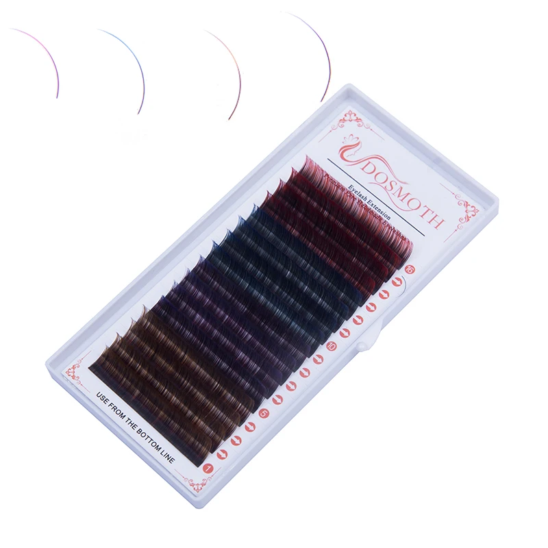 Ресницы разных цветов в одном лотке, градиентное окрашивание, отдельная ресница для наращивания красного, коричневого, фиолетового, синего ...
