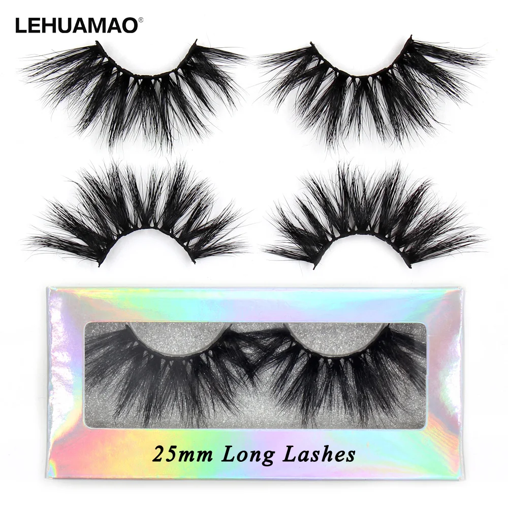 LEHUAMAO 25 мм ресницы 3D норковые ресницы длинные пушистые вьющиеся ресницы безжалостные натуральные ресницы драматические накладные ресницы