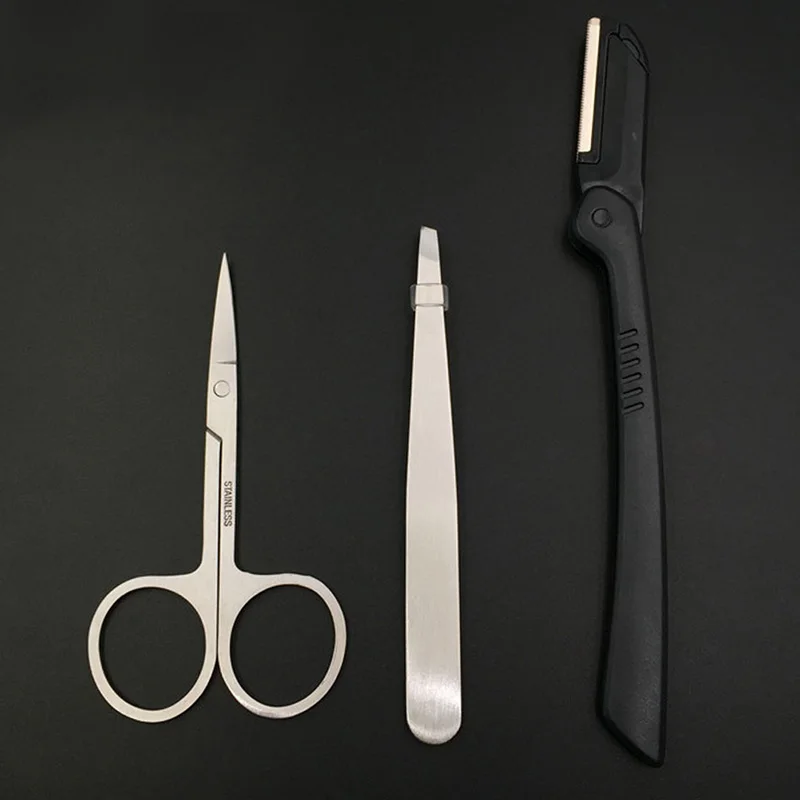 Бритва для бровей Триммер изогнутые Острые Ножницы для макияжа хорошо закрытый пинцет для бровей для формирования лица Инструменты для удаления волос