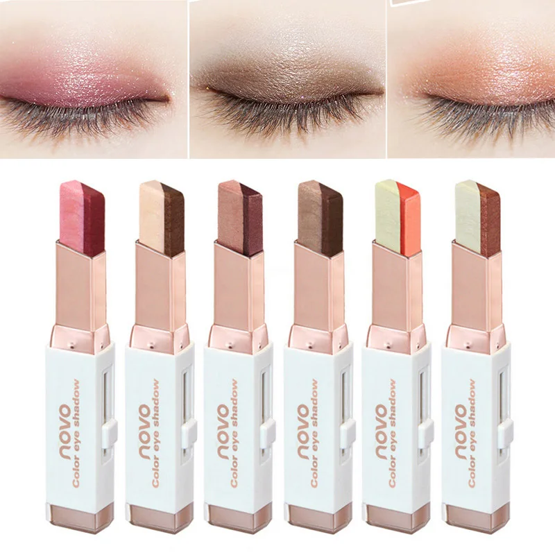 Цветные тени для век, стерео градиентные бархатные мерцающие двойные цветные тени для век, кремовая ручка, палитра для макияжа, косметика, водостойкая