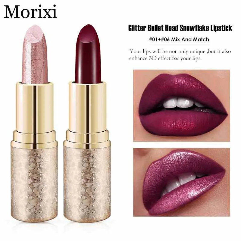 Morixi snow губная помада розовый красный блеск крем для губ долговечная водостойкая гладкая сильно пигментированная металлическая помада Q907