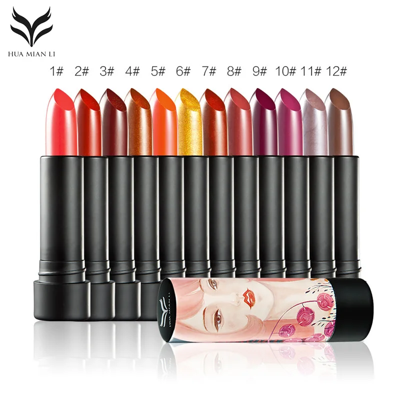 HUAMIANLI помада 12 цветов Сексуальная долговечная помада водостойкая Очаровательная косметика Помада жемчужный блеск красота Губы Макияж