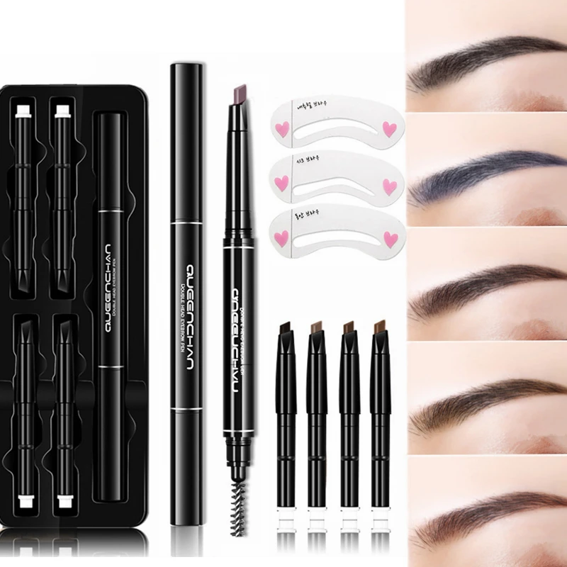 8 шт. Набор Карандаш для бровей, набор трафаретов для бровей, водостойкий стойкий карандаш для татуировки, двухсторонний карандаш для бровей...