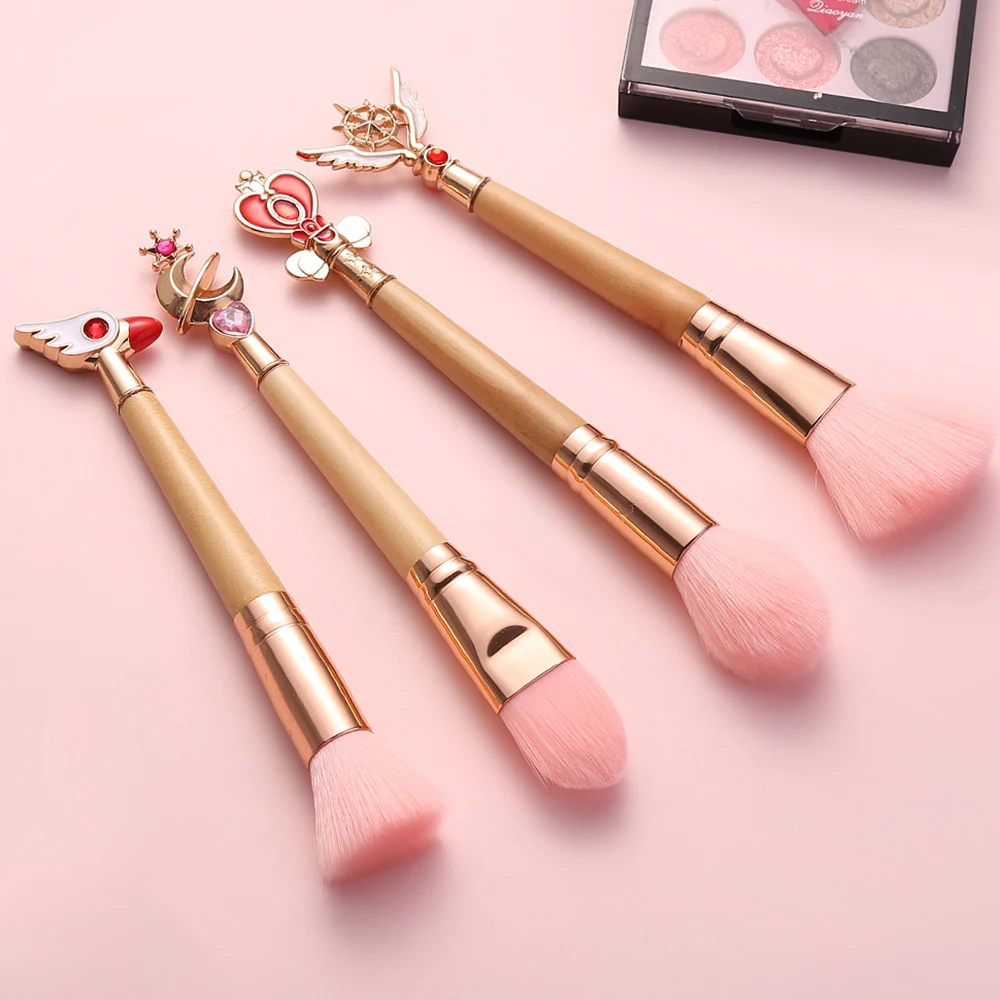 Лидер продаж! 4 стиля кисти для макияжа бамбуковая Кисть для макияжа Мягкая синтетическая коллекция волос розовая пудра румяна кисти с случ...