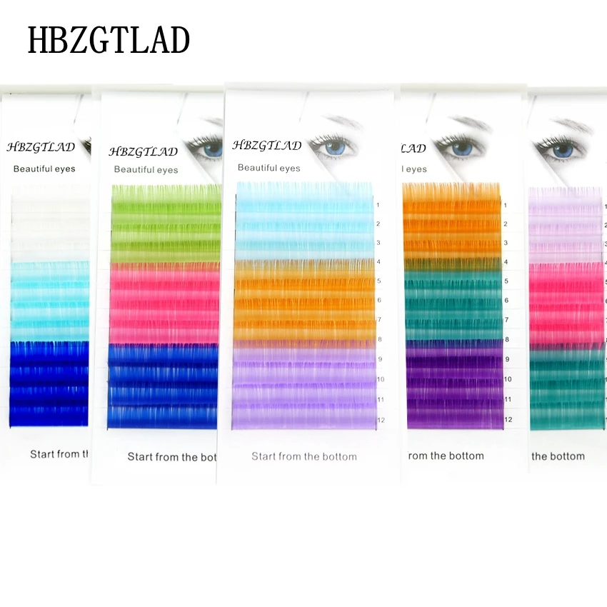 HBZGTLAD новый C/D 0,07/0,1 мм 8-15 мм накладные ресницы синий + зеленый + фиолетовый + серый ресницы индивидуальные цветные ресницы искусственные ресни...