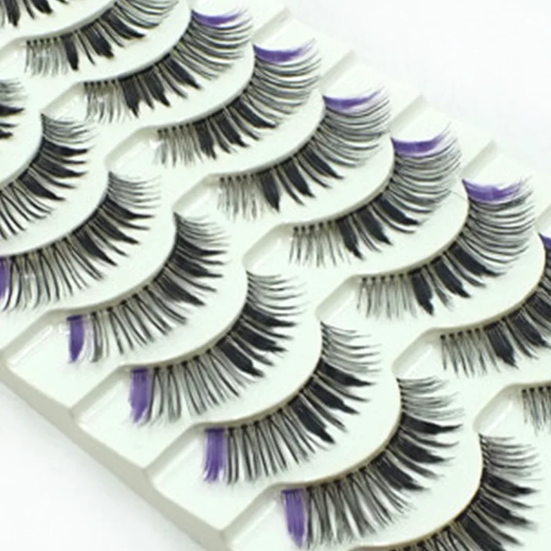 10 пар фиолетовый, черный крест Накладные ресницы прозрачный Крылатый Толстая преувеличены поддельные ресницы этап Костюмы для латиноамери...