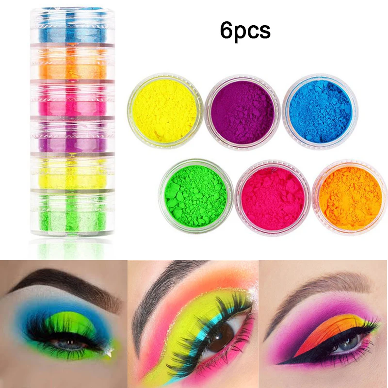 6 цветов, неоновая рассыпчатая пудра, тени для век, набор для макияжа, высокий пигмент, матовая минеральная пудра, неоновая, желтая, зеленая п...