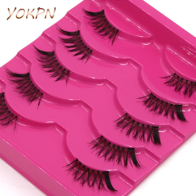 Yokpn половина Накладные ресницы Природный крест-накрест грязный толстый мягкие ресницы 100% ручной прозрачным стебли Макияж ресницы