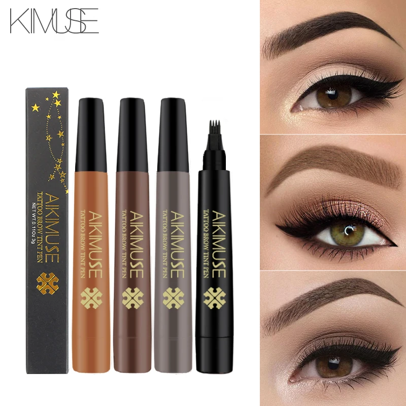 AIKIMUSE бренд брови вилка наконечник жидкий карандаш 4 головы бровей водонепроницаемый татуировки ручка длительный эскиз усилитель Краска Ру...