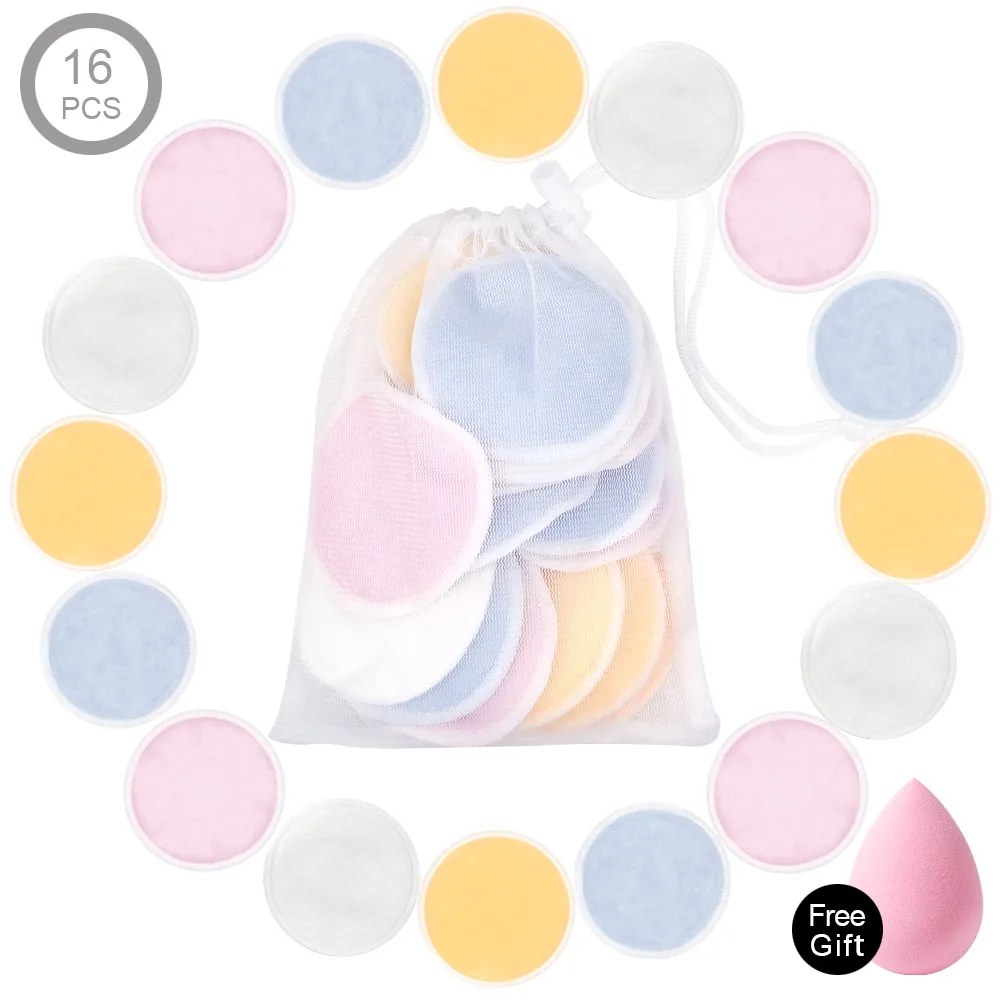 Моющиеся Многоразовые очищающие хлопковые накладки для снятия макияжа 16 упаковок микрофибра для снятия макияжа мягкий бамбук с сетчатая к...