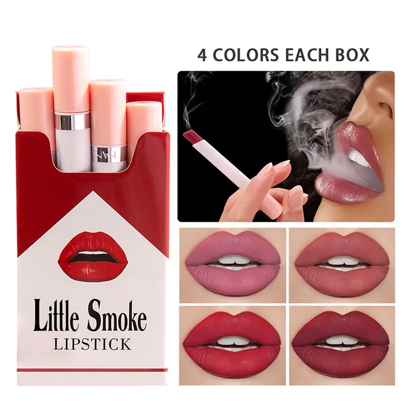 4 шт./компл. матовая бархатная гладкая как шелк, Длительное Действие, Дымная труба Красная губная помада наборы с Цвет питательный, для макияжа