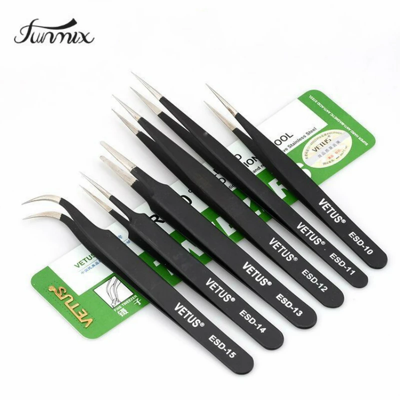 100% VEtus ESD антистатические пинцеты из нержавеющей стали инструменты для технического обслуживания промышленные прецизионные изогнутые прям...