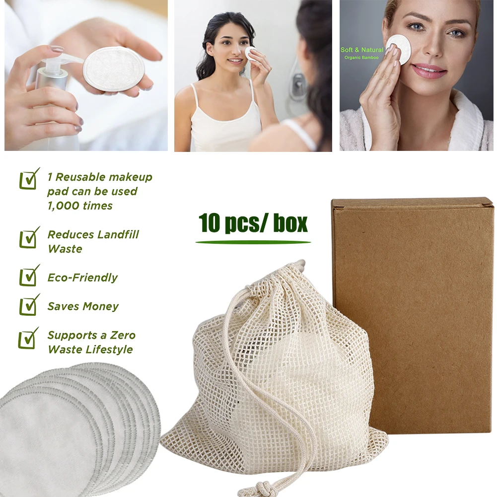 10 шт. подушечки для снятия макияжа многоразовое средство для снятия макияжа для лица из бамбукового волокна подушечки для ухода за кожей лица с сетчатым пакетом