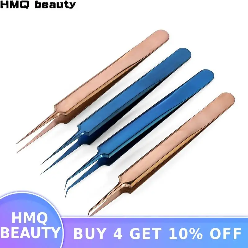 Пинцет для наращивания ресниц из нержавеющей стали золотого и синего цвета, высокоточный набор пинцетов для наращивания ресниц с тонким наконечником