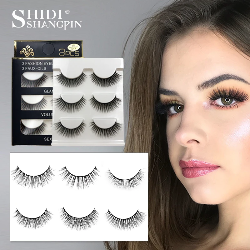 SHIDISHANGPIN 3 пары норковые ресницы натуральный накладные ресницы make up ручной работы 3d норки Искусственные ресницы объем ресниц расширение