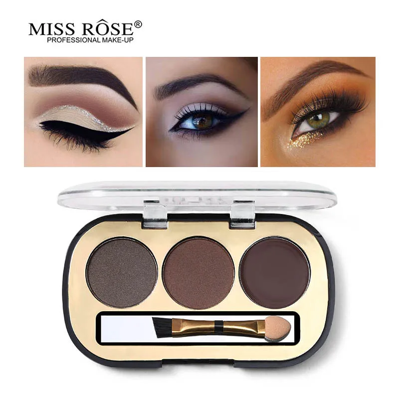 Miss Rose 3 цвета набор для бровей Макияж Палитра татуировка бровей Гель-пудра длительный глаз бровей натуральный 3d макияж набор с кистью