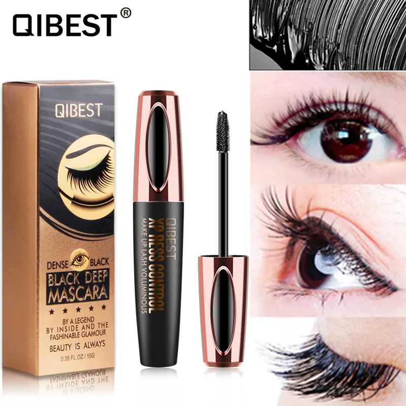 Qibest 4D шелковые волокна завивающая, удлиняющая ресницы тушь для ресниц Макияж Водонепроницаемый Lasting черная утолщающие удлинение тушь для р...