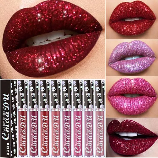 Корейская мода Хэллоуин красный блеск яркий блеск для губ Водонепроницаемый жидкая губная помада алмаз Блестящий Блеск для губ, Косметика ...