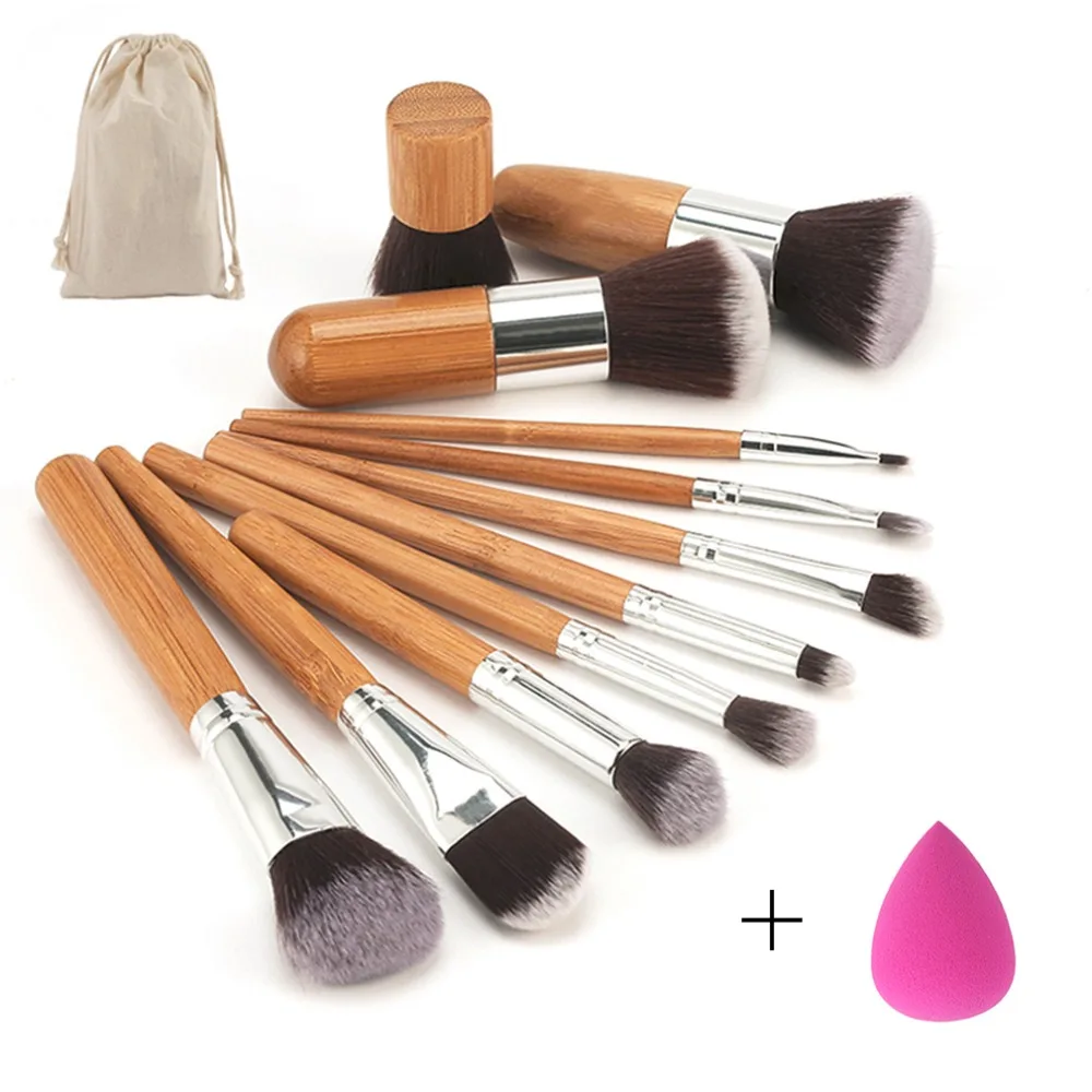 11 шт./компл. бамбуковой ручкой кисти для макияжа Набор теней кисть для консилера кисть для румян Кисть для нанесения основы под макияж с Смешивание Косметические спонжи буфами на рукавах