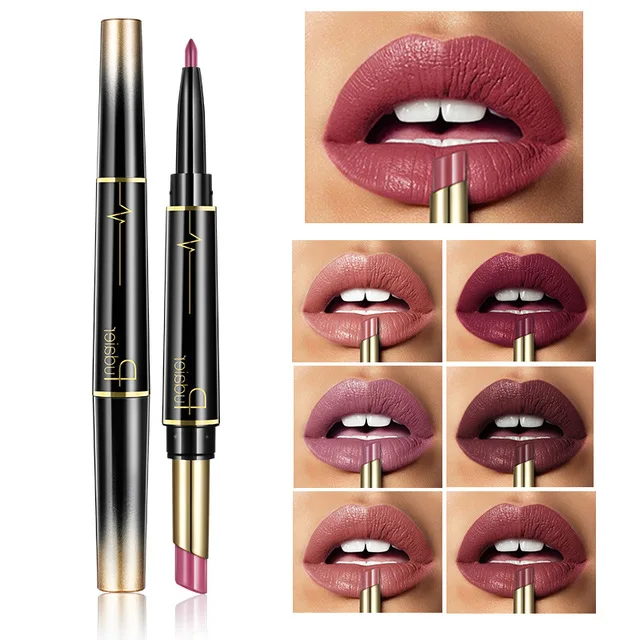 Горячая Марка матовая губная помада Цвет Косметика Wateproof двухсторонний длительный телесный красный матовый подводка для губ Карандаш мато...