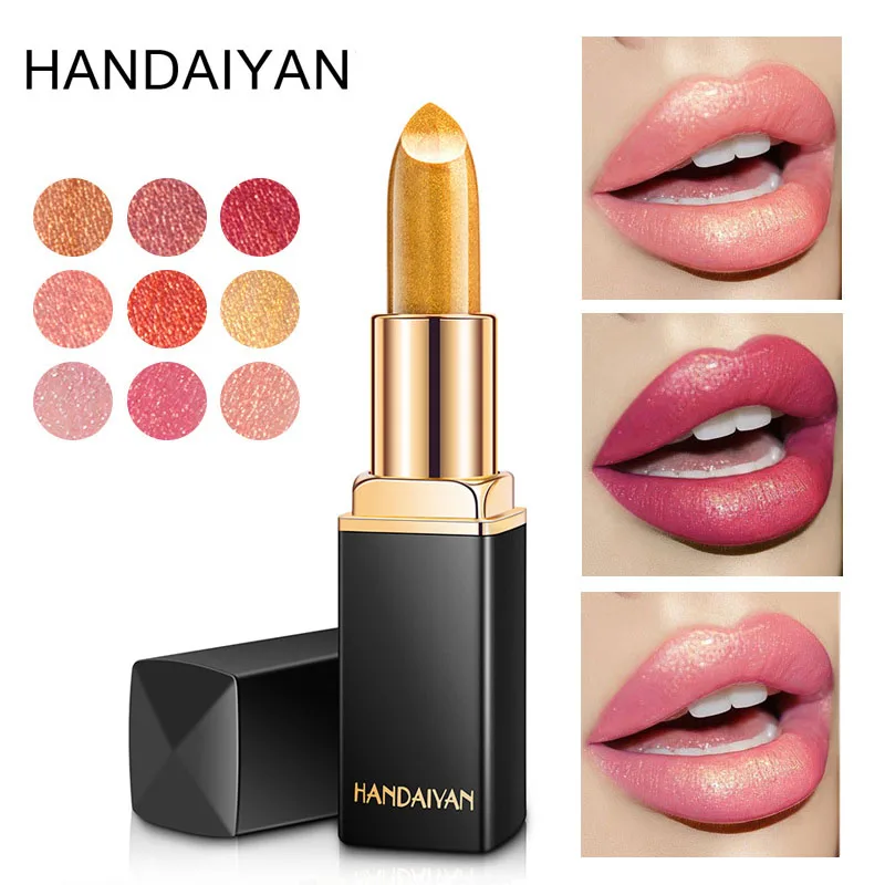 HANDAIYAN губы блеск Супер металлик губная помада Температура изменить Цвет золотым мерцанием красный Rouge жемчужина сияет пигмент бальзам для г...
