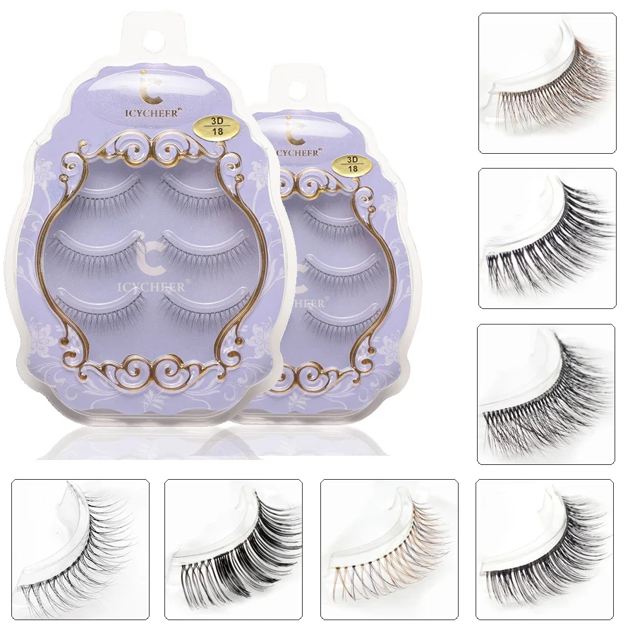 ICYCHEER 3 пары 3D Макияж ресницы 3D Искусственные ресницы естественно Длинные ручной работы maquiagem на прозрачной ленте