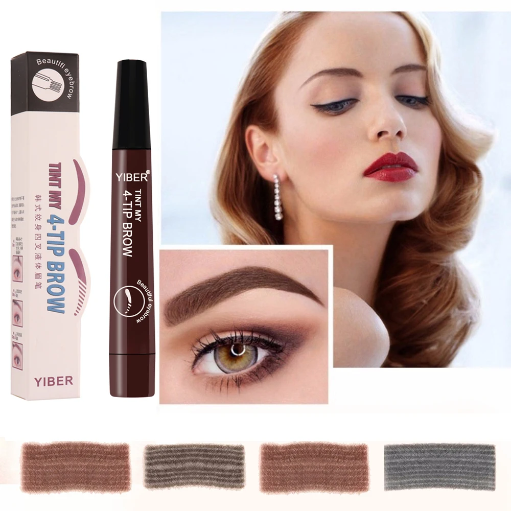 5 цветов, 4 головки, маркер для бровей, карандаш, водонепроницаемый, микроблейдинг, татуировка бровей, ручка для бровей, краситель, макияж, кар...