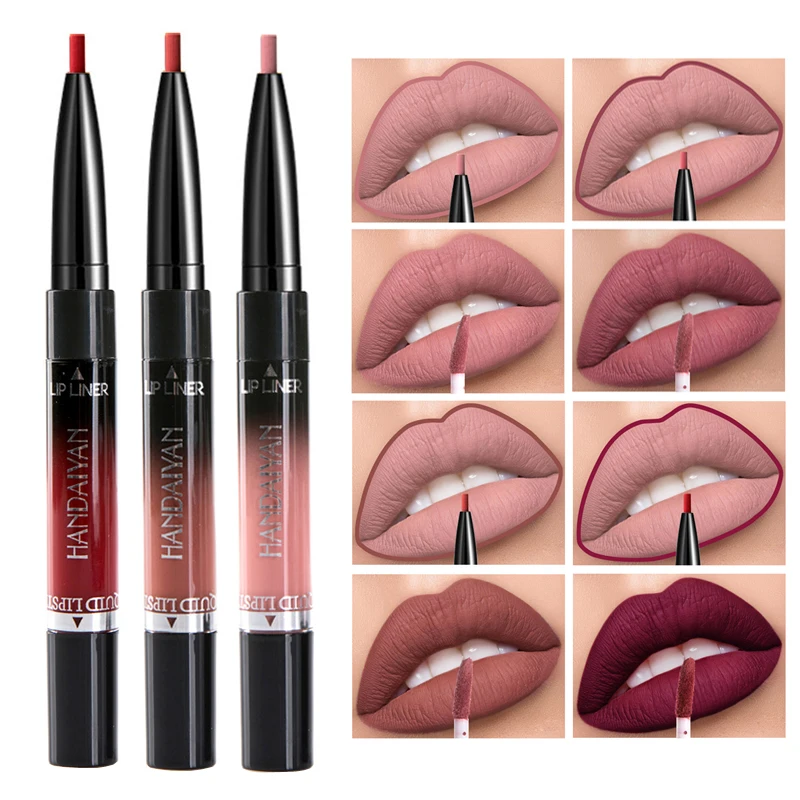 HANDAIYAN 2 в 1 двухсторонний блеск для губ 14 цветов Матовая жидкая губная помада Lipliner для губ Косметика водостойкая Помада для губ оттенок стойк...