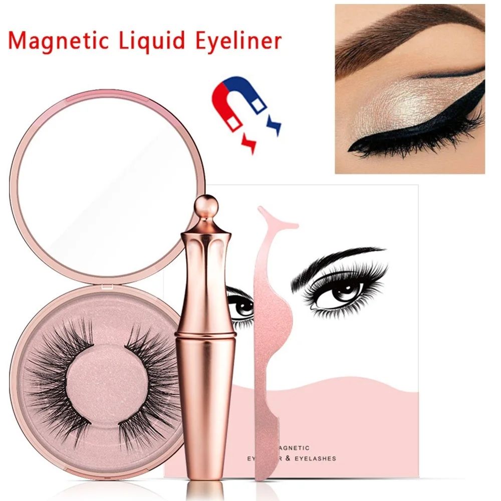 Новинка 4 мл жидкая Черная Магнитная подводка для глаз + Накладные ресницы + Пинцет Набор водостойкий, быстро сохнущий удобный инструмент TSLM1