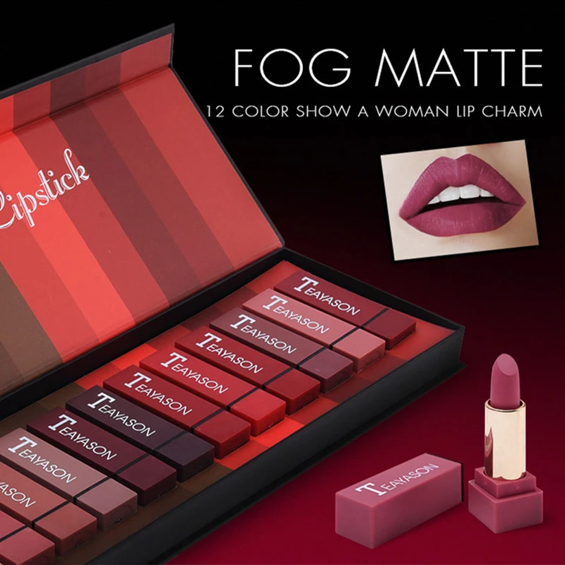 12 цветов Сексуальная долговечная водостойкая матовая губная помада бархатная губная помада блеск косметическая Красота Макияж увлажняющи...