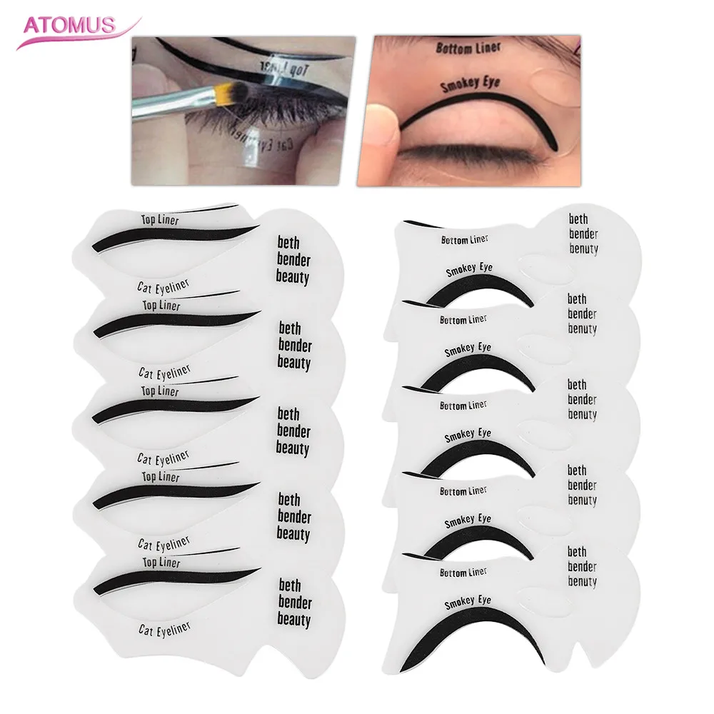 Фирма atomus 10 шт Новый DIY многоразовые вспомогательные трафареты для подводки глаз Eye Liner аксессуары для макияжа Красота набор форм рисунок ру...