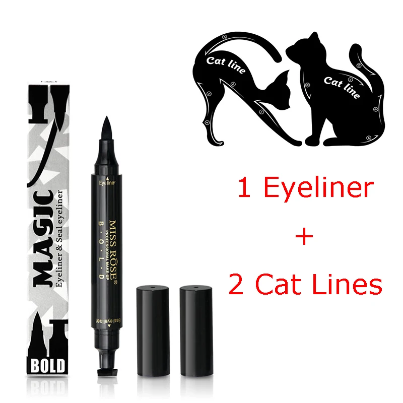 1 шт. быстросохнущая макияж подводка для глаз, Водостойкая Подводка для глаз ручка с печатью + 2 шт. кошачий Глаз Линия подводка для глаз Трафа...