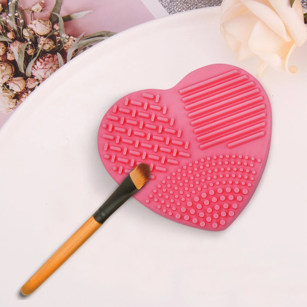 Heart Shape Makeup Brush Cleaner Silicone Brush Cleaning Mat with Wet Dry Dual Use Sponge,Green
