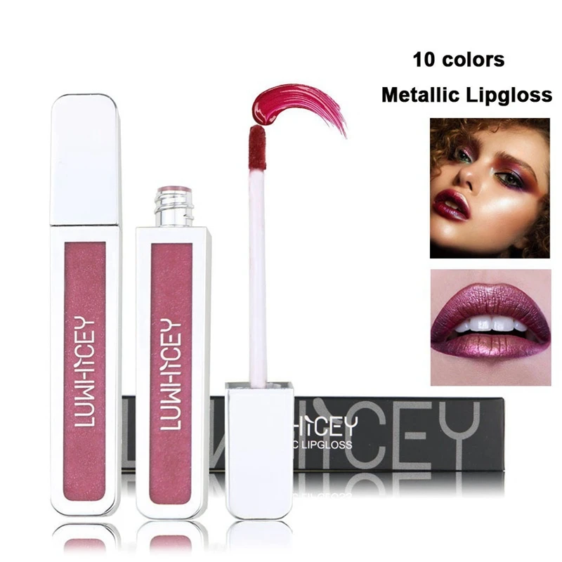 10 цветов металлический блеск для губ водостойкий блестящая жидкая помада макияж долговечный глянцевый оттенок косметика