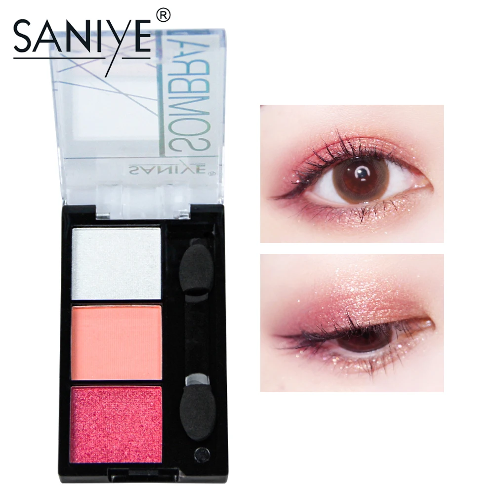 SANIYE водонепроницаемые Минеральные тени для век Палитра портативные тени для век макияж с кисточкой палета де Сомбра розовые тени для век 0319