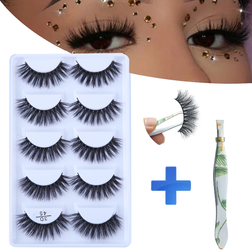 5 пар Мультипак 5D мягкая норка волосы Накладные ресницы ручной работы Wispy пушистые длинные ресницы натуральные макияж инструменты Искусств...