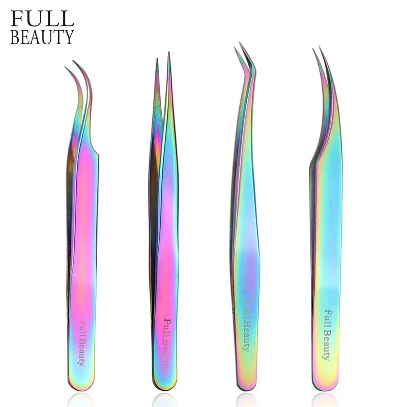 4 типа, прямой изогнутый Радужный Пинцет для наращивания ресниц, женский макияж, маникюрный прецизионный пинцет для бровей, FBT1-4