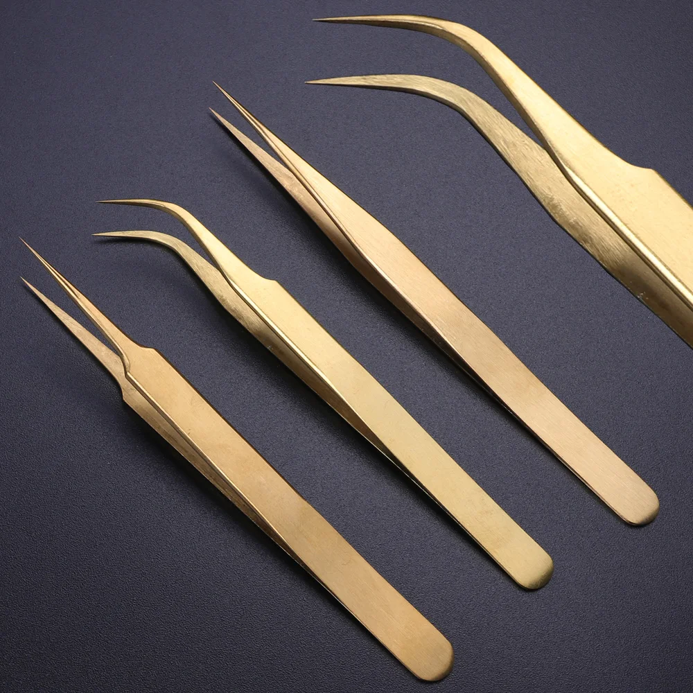 1 шт. Пинцет для объемных ресниц, Золотое наращивание ресниц, прямые изогнутые ногти, Декор, кусачки для бровей, макияж, маникюрные инструменты SA774